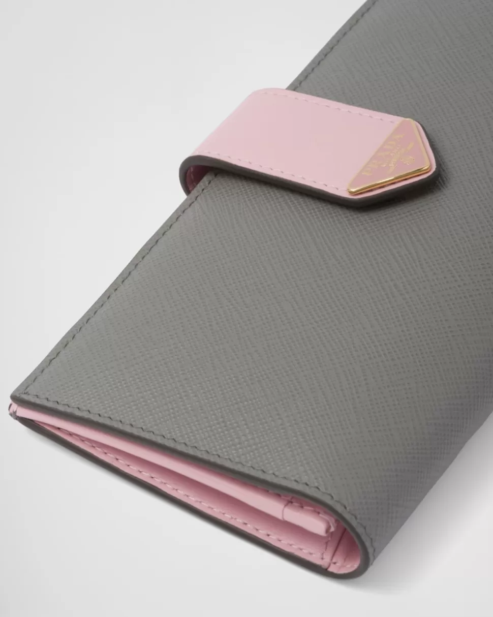 Caracterizada por un toque sofisticado y precioso, esta cartera grande presenta una combinación de detalles en piel suave y piel Saffiano, un emblemático material de Prada con una textura entrecruzada. Caracterizado por su diseño minimalista y equipado con varios compartimentos y bolsillos, el accesorio incorpora el emblemático logo de la marca.