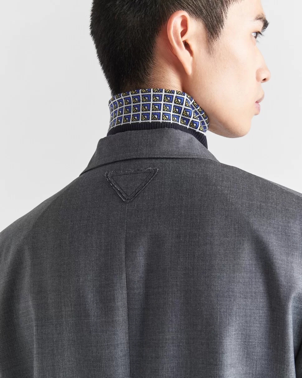 La confección de sastrería y los detalles de encanto moderno caracterizan esta chaqueta de lana con botonadura simple. Prada fusiona espíritu innovador y saber hacer italiano para crear hilos de gran calidad y un diseño atemporal.