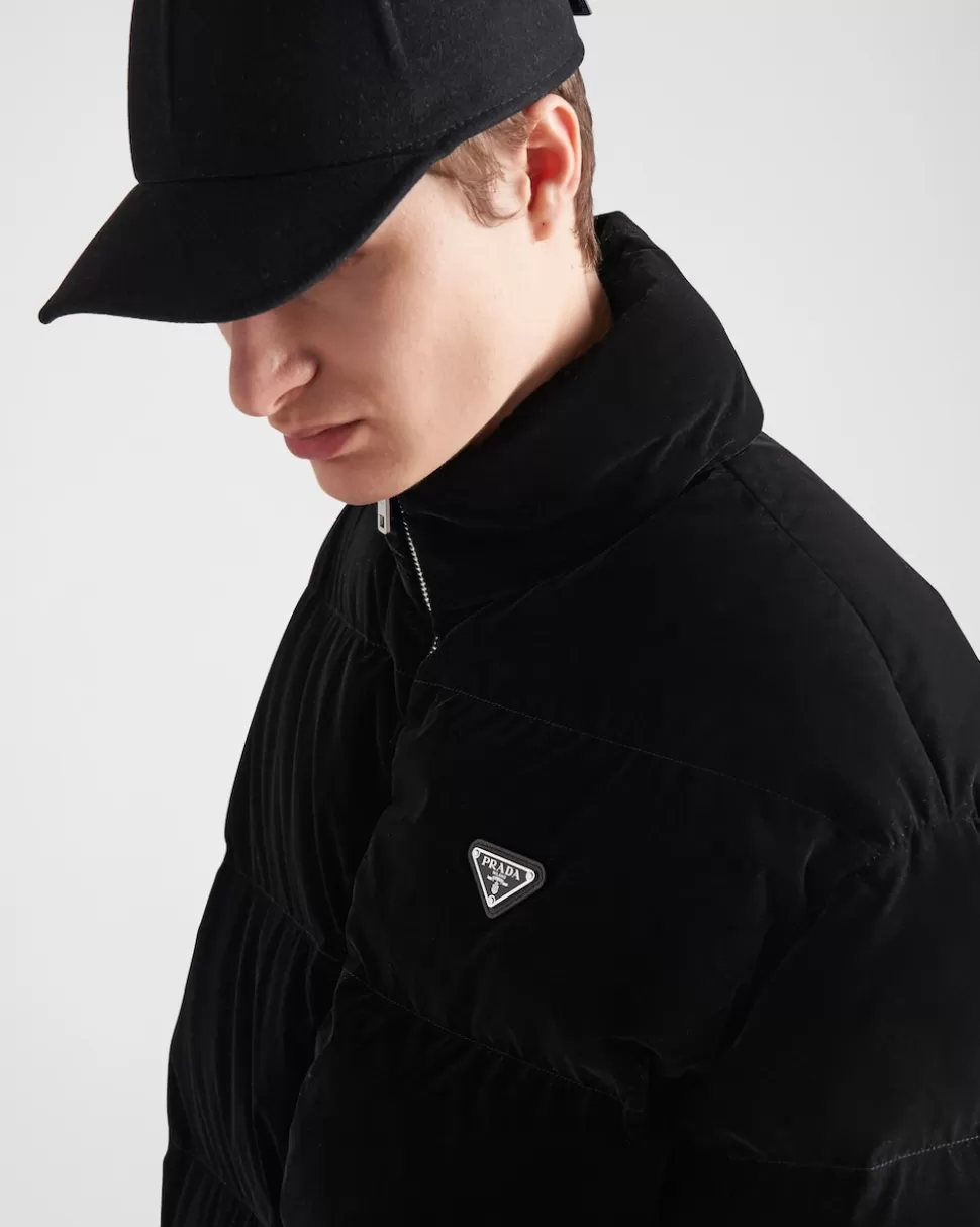 Los volúmenes suaves y el encanto casual pero refinado definen esta chaqueta de plumón corta con acolchado de plumas de ganso. La silueta clásica de inspiración deportiva se define por las proporciones contemporáneas y los detalles prácticos. El logo triangular de metal esmaltado completa esta pieza versátil con un toque icónico.