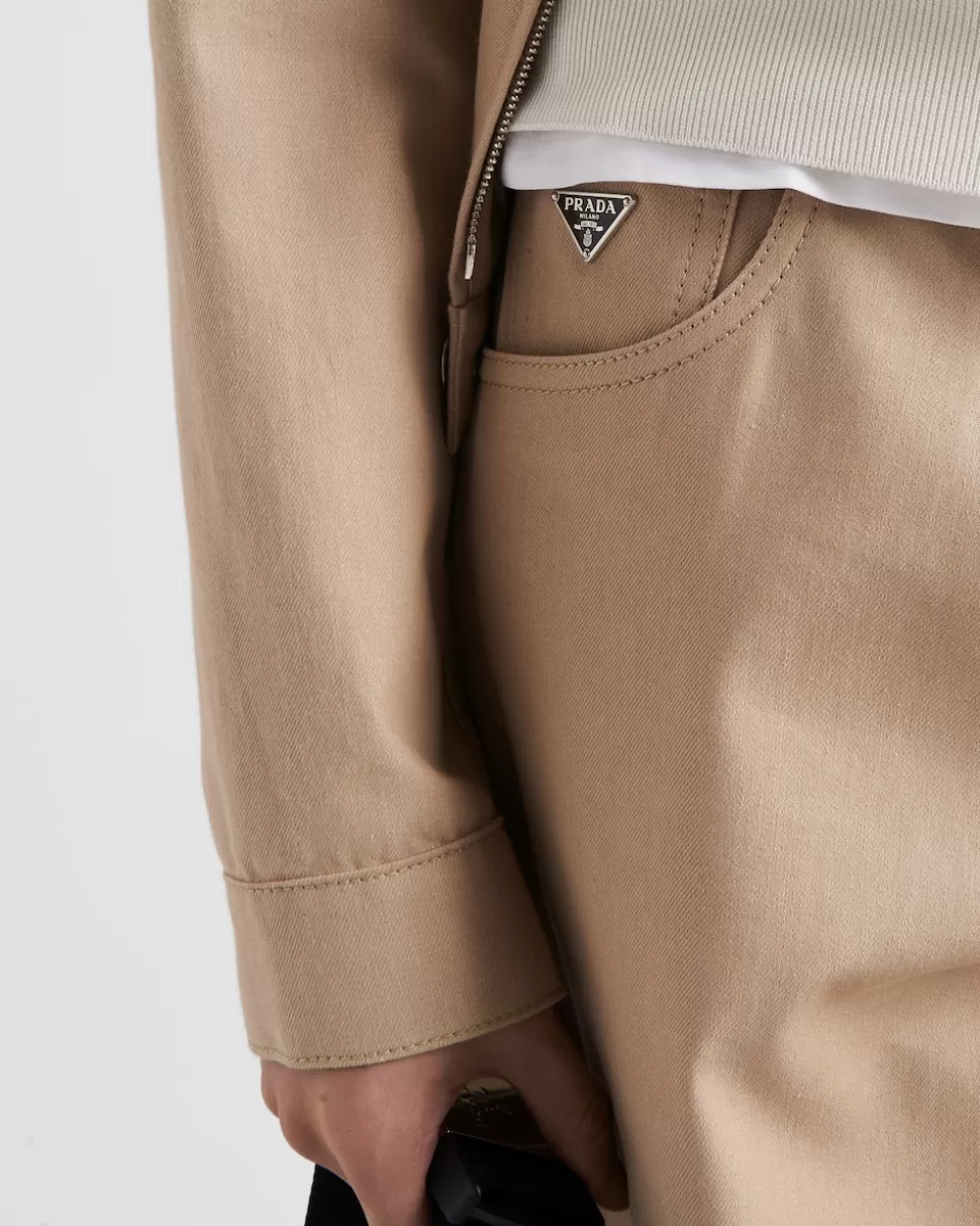 Estos pantalones vaqueros, una prenda básica de cualquier armario, cuentan con una silueta contemporánea con cintura baja y se realzan con el característico acabado sin tratar que confiere a la prenda su textura única. Este modelo clásico de cinco bolsillos se completa con el logo de archivo Prada en relieve en la etiqueta. Además, el icónico triángulo de metal esmaltado aporta el toque inconfundible de la marca.