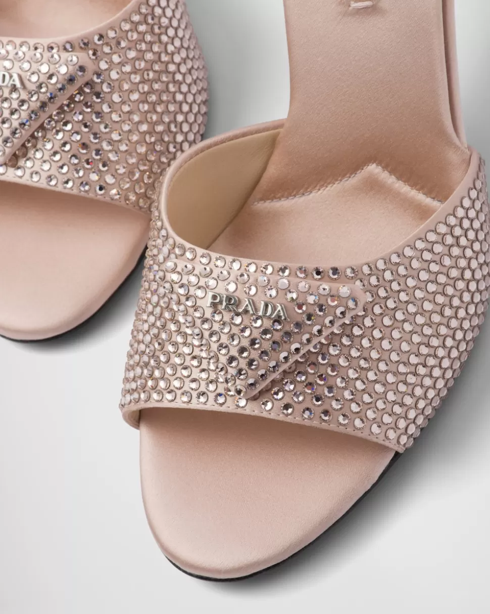 Prada Sandalias Planas De Satén Con Cristales^Mujer PANTUFLAS Y CHINELAS
