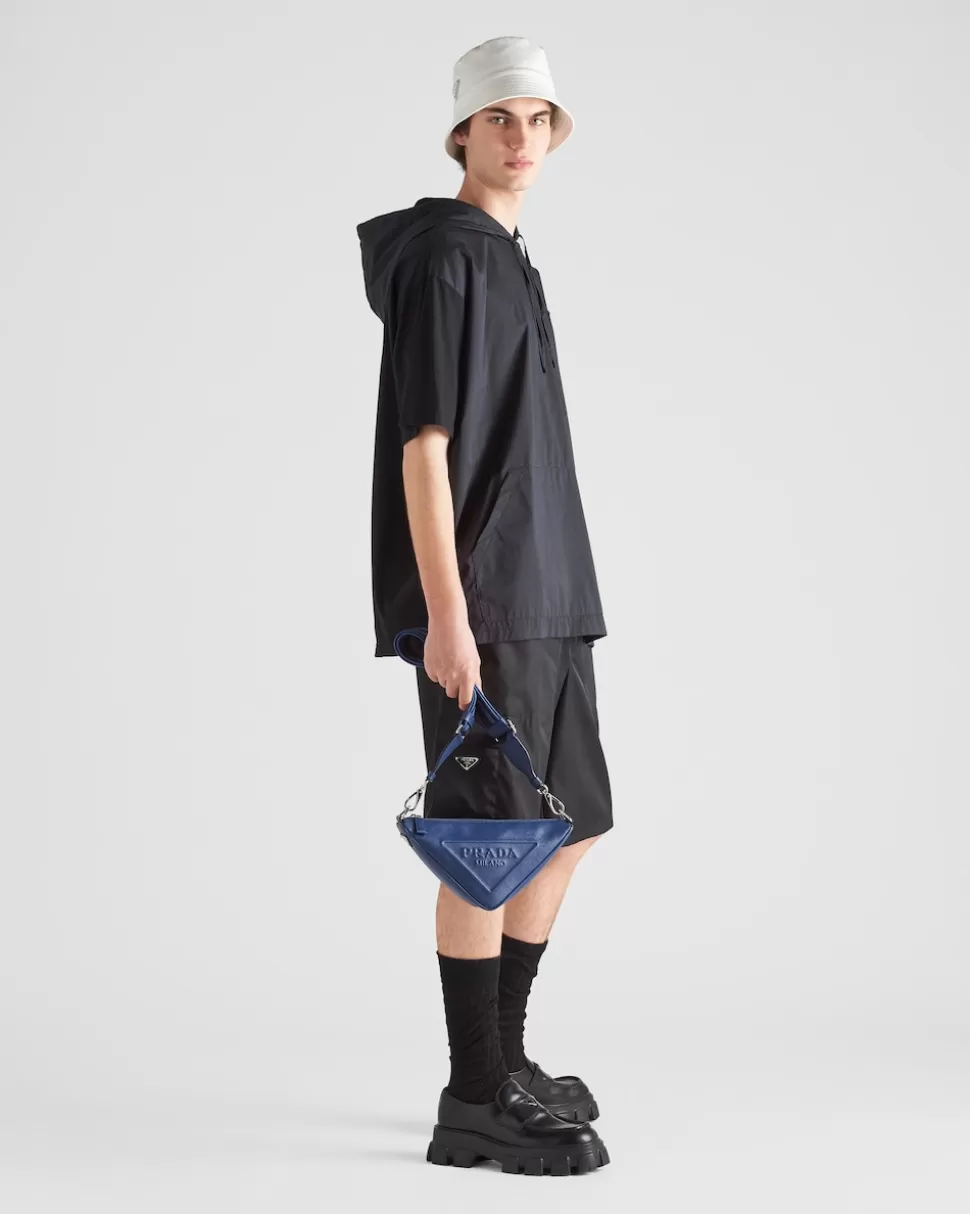 El concepto híbrido impregna la narrativa de Prada y se traduce en diseños innovadores con una mezcla interesante e inusual de materiales, formas y funciones. Las inserciones de algodón técnico subliman esta camiseta de punto Prada, prenda imprescindible de la marca y expresión de sencillez refinada, y le confieren un aspecto innovador. Este diseño holgado repleto de referencias al mundo del deporte cuenta con capucha y un amplio bolsillo tipo pouch que revoluciona su función.