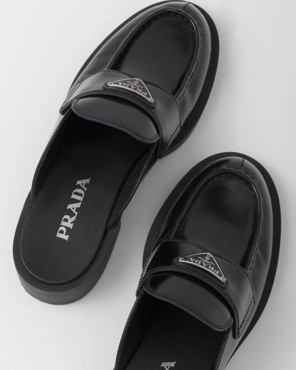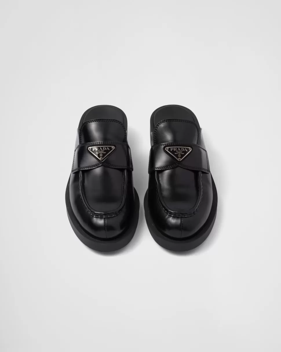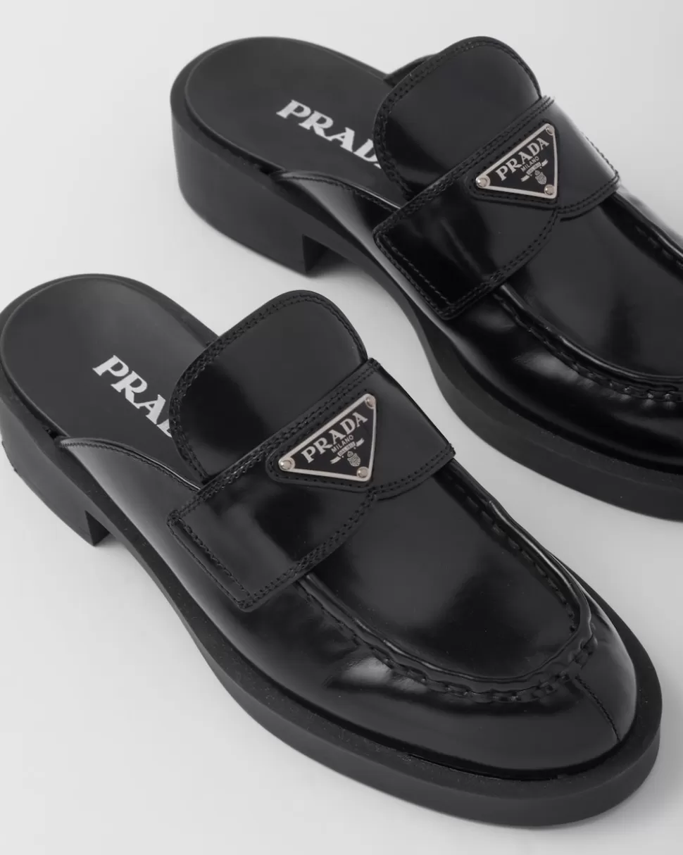 Prada Mules Chocolate De Piel Cepillada^Mujer MOCASINES
